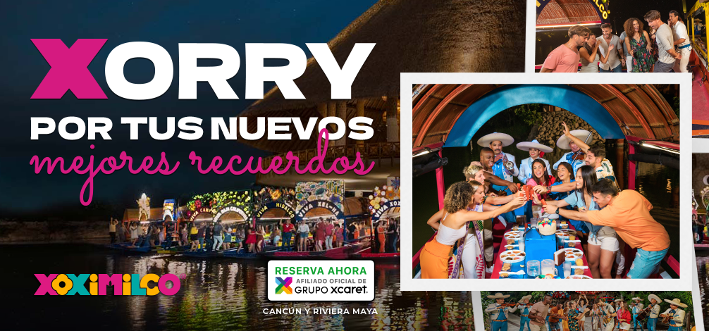Xoximilco Cancún es una creación de la compañía Xcaret que adapta la filosofía de sus parques a la fiesta nocturna: paisaje, cultura mexicana y mucha diversión. El concepto está inspirado en el original Xochimilco de Ciudad de México porque la fiesta transcurre mientras navegas en una trajinera por canales.